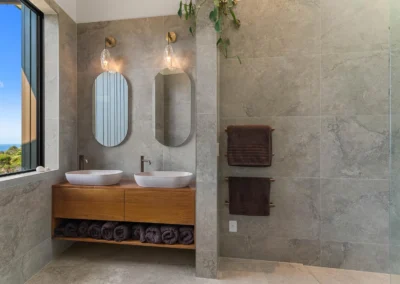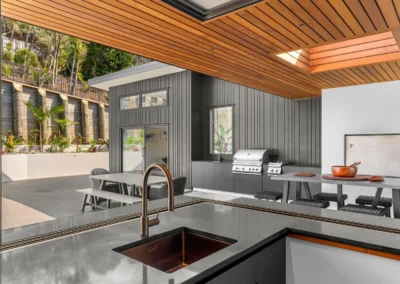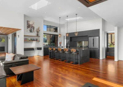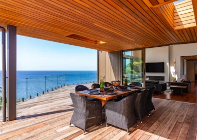 A low-maintenance material palette was selected to suit the exposed coastal environment and support long-term durability. Constructed by Ken Topp Builders, the project showcases a high level of craftsmanship, translating complex structural requirements into a refined and resolved architectural outcome.