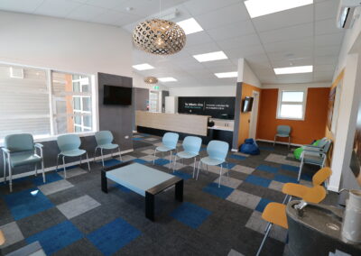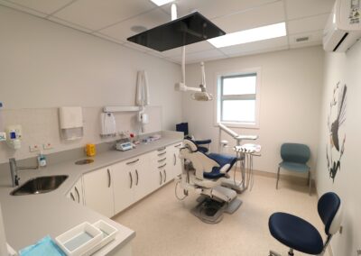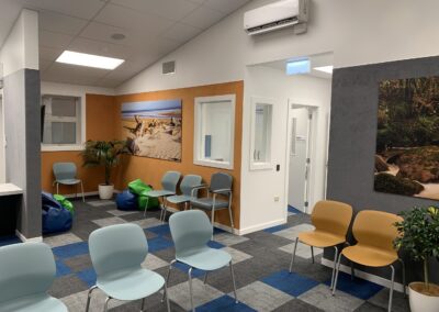 The extension significantly increases the clinic’s capacity, introducing five additional treatment rooms and a dedicated consultation room. Supporting spaces were carefully planned to improve functionality and workflow, including generous storage areas, a staff meeting room, an open-plan clinicians’ office, a call centre, and an enlarged reception and waiting area designed to comfortably accommodate patients and their families.